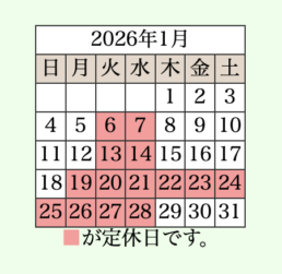 2026年 定休日 心斎橋店 1/19~1/28・渋谷店1/19~2/4